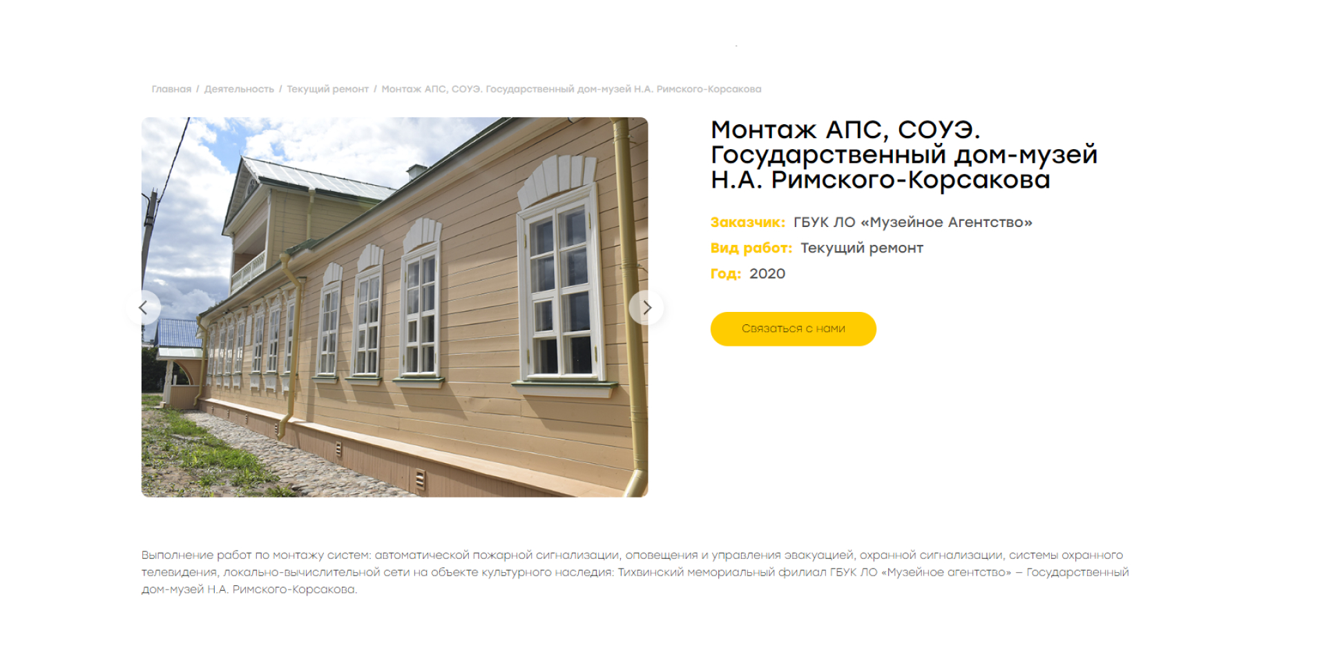 Мы наполнили страницы сайта примерами работ компании. Каждый кейс сопровождался кратким описанием и фото.