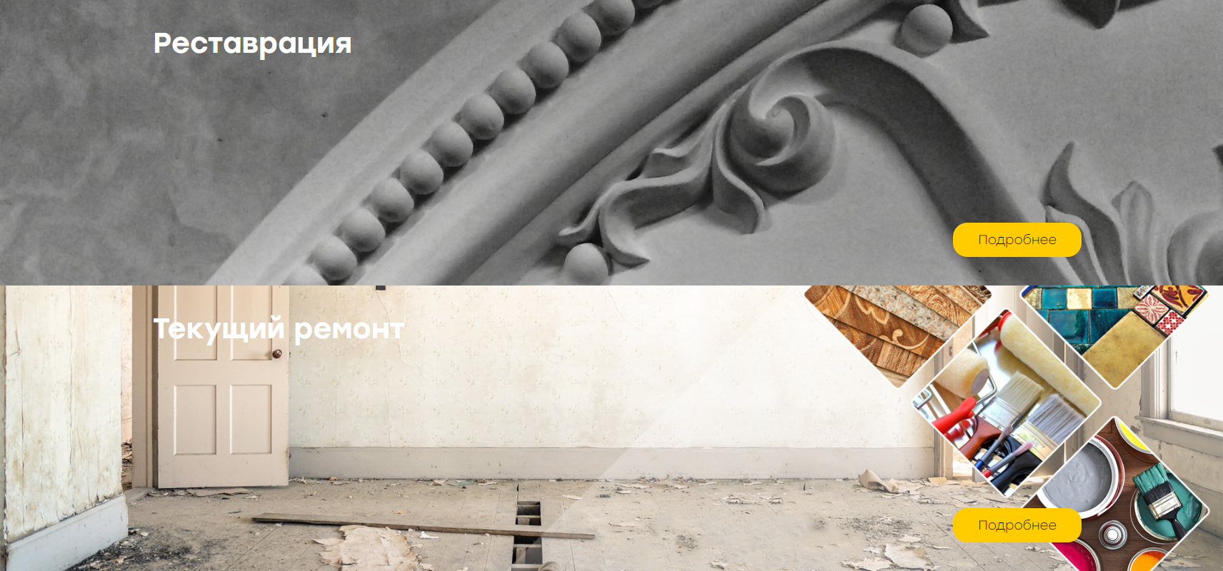 Разделили все услуги компании на отдельные блоки. Чтобы посетитель сайта сразу мог идти в интересующий его раздел, а не листал портфолио всех работ от реставрации исторического объекта до проектирования современного здания. Все-таки задачи тут разные.