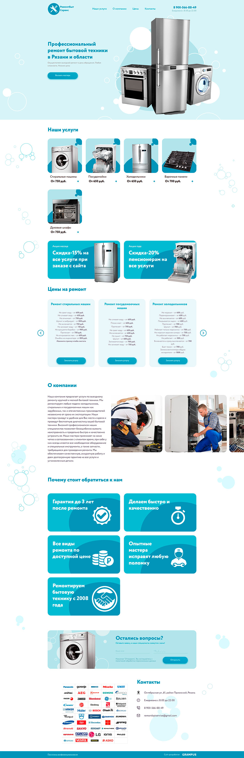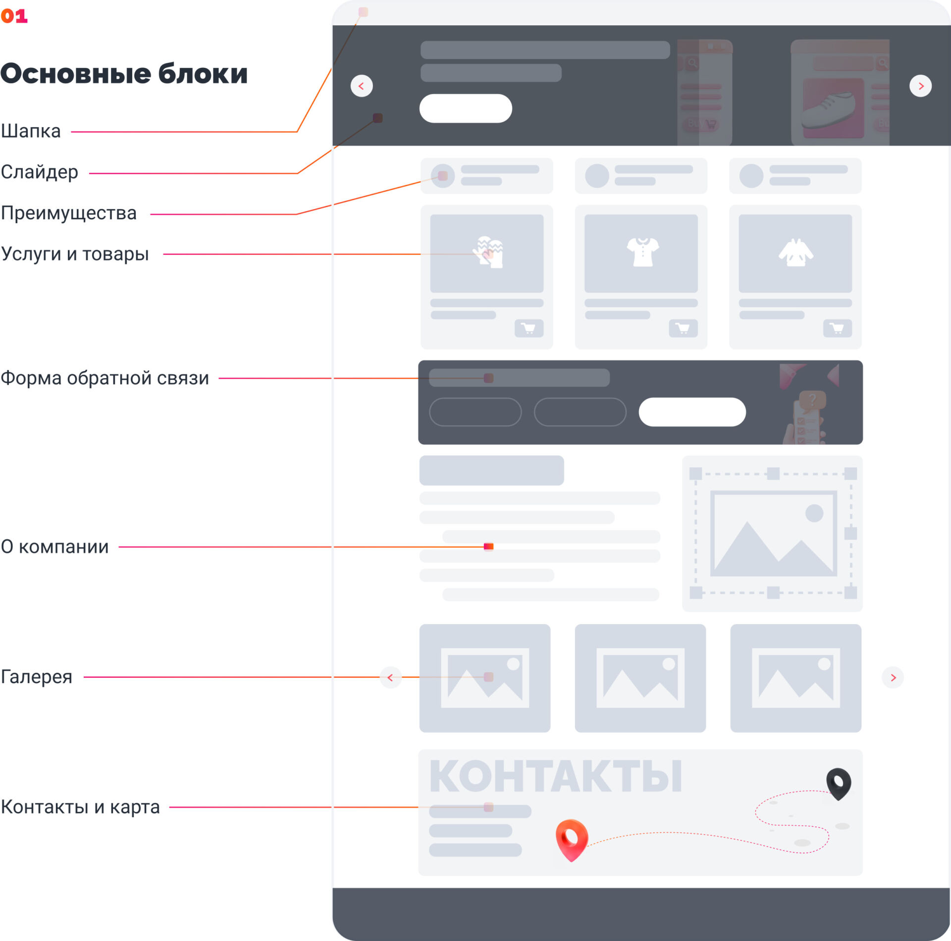Исходя из тестов и аналитики на протяжении нескольких лет мы сформировали необходимый перечень информации, которая должна быть на сайте, чтобы он работал эффективно и генерировал заявки и звонки. Именно эти блоки мы и включили в стоимость разработки лендинг-пейдж.